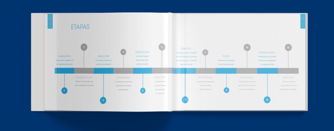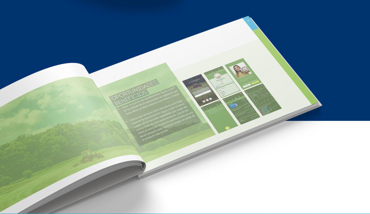 En colaboración con la Consultora Olivia Lab, encargada de realizar el análisis de la cultura organizacional para Banco Ciudad, se diseño una pieza tipo booklet, que presentó el resultado del programa de innovación "Desing Thinking".
