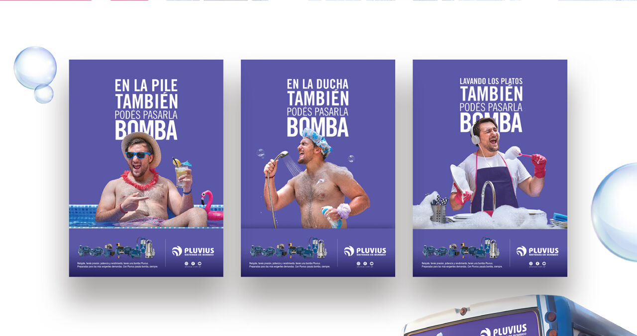 Bajo el slogan “Pasalo bomba” elegido para la campaña de la línea de sistemas de bombeo de la marca Pluvius, desarrollamos una serie de situaciones con un tono de comedia en la que las bombas de agua son protagonistas.